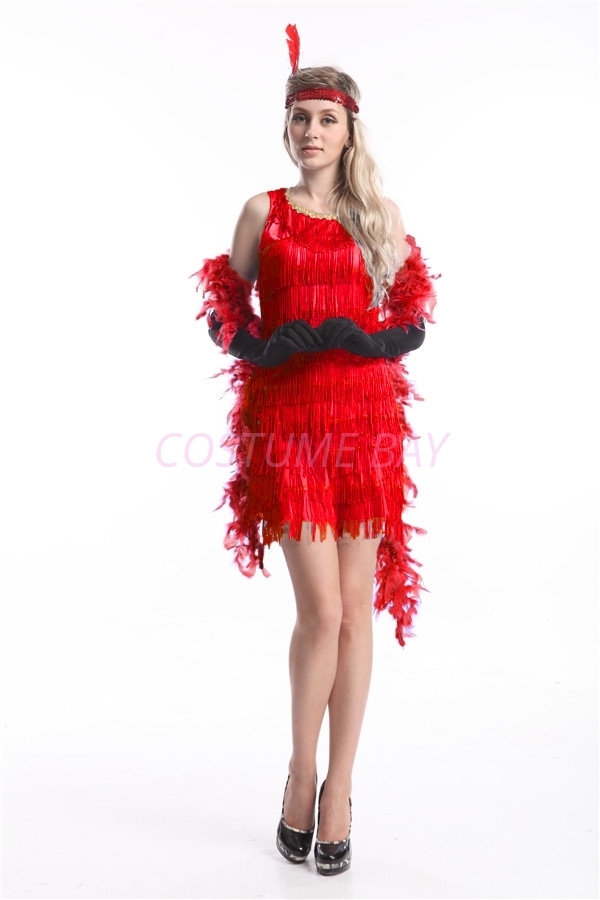 1920's Charleston Flapper Dress Two Shoulders - Red