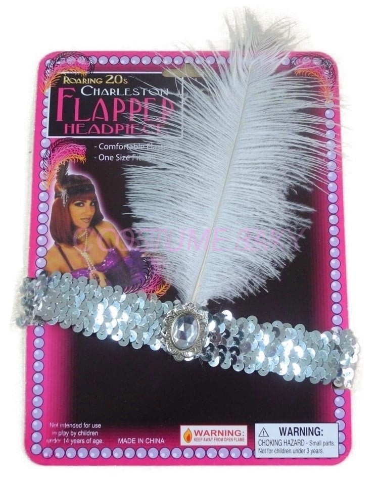 1920's Charleston Flapper Headband with Feather - Silver