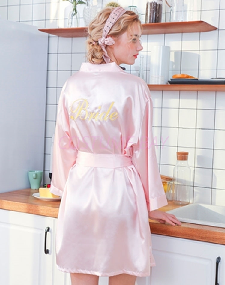 Women Bridal "Bride" Satin Kimono Robes - Pink