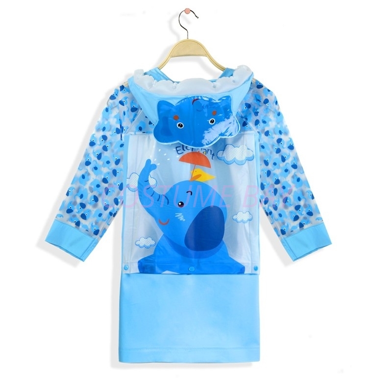 Children's Animal Waterproof Raincoat with Backpack Cover -Elephant
