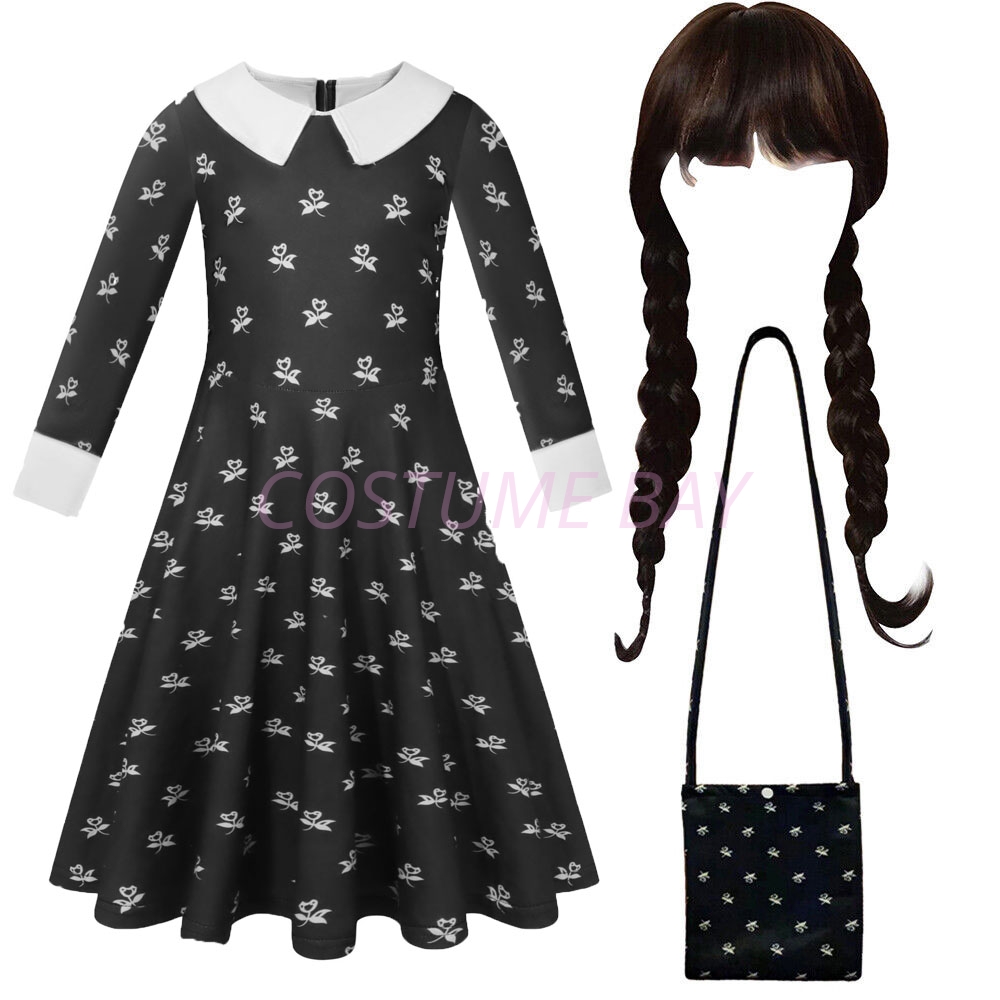 Girls Wednesday Addams Family Cosplay Dress Up Costume