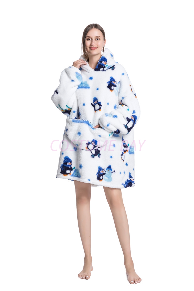 New Design Animal Fruit Print Hooded Blanket Hoodie - Penguin