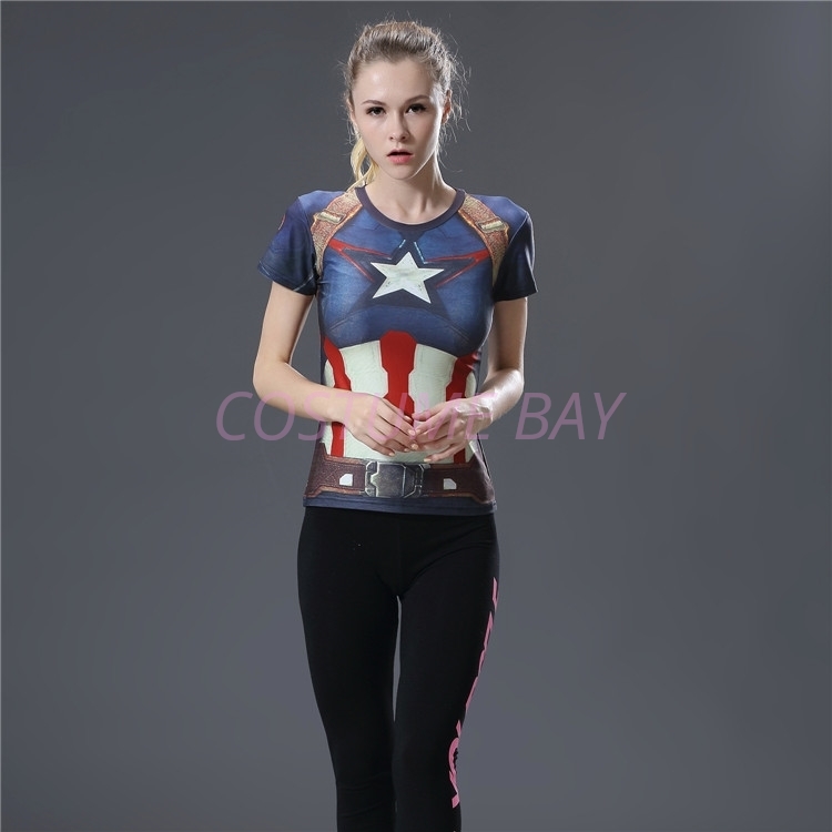Quick Dry Captain America Printed Yoga Slim Fitness Top Activewear