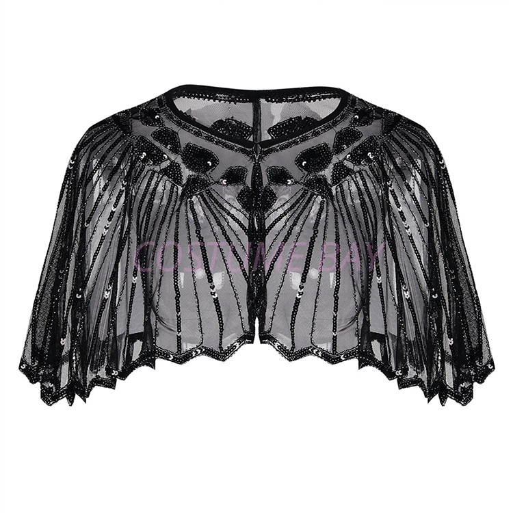 Exquisite decoration is what this 1920s cape will show to everyone, absolutely boutique. The whole shawl art deco with sequins and beads, look vintage and luxury. All the decoration embellished on the soft tulle, provide a softness and lightness feeling. The zig zag hemline design looks fancy and chic. This 1920s shawl is perfect to go with 1920s flapper dress, great for wedding/evening /party occasion.