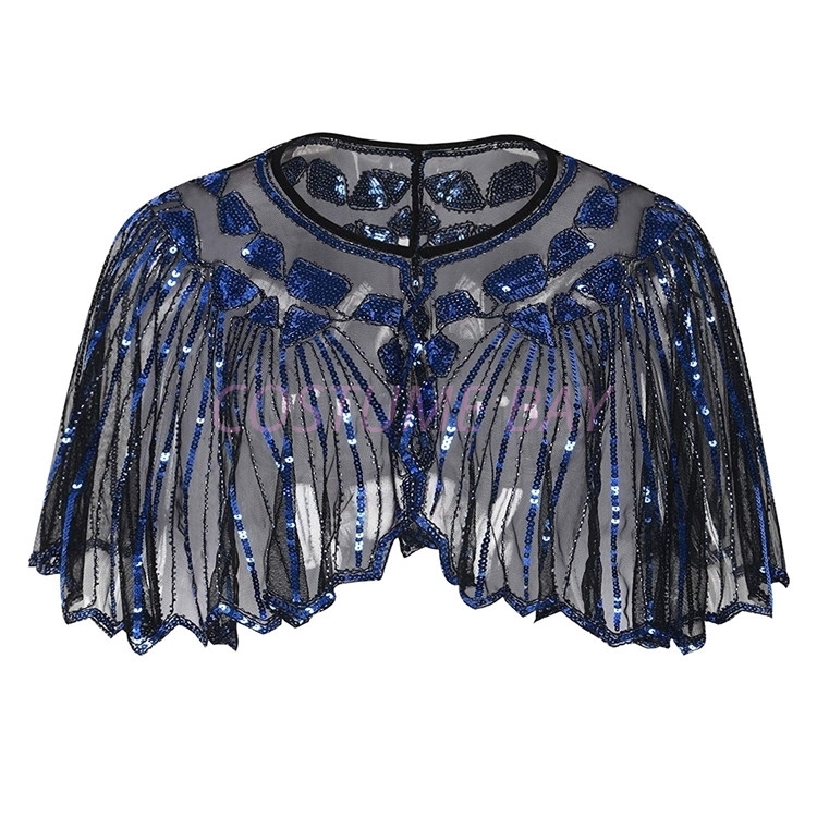 Vintage Boutique Beaded Sequin Flapper Cape - Black Blue