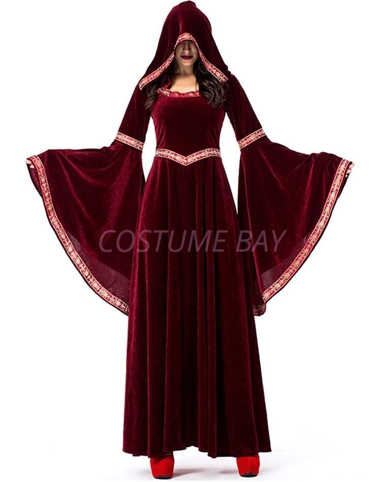 Womens Medieval Gothic Renaissance Burgundy Gown Costume