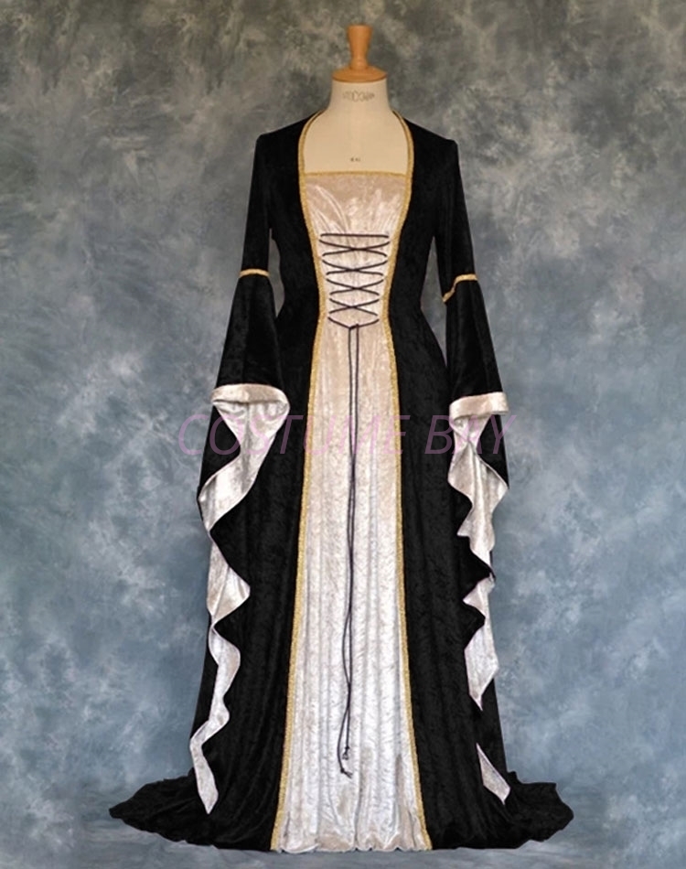 Womens Medieval Gothic Renaissance Gown Costume - Black